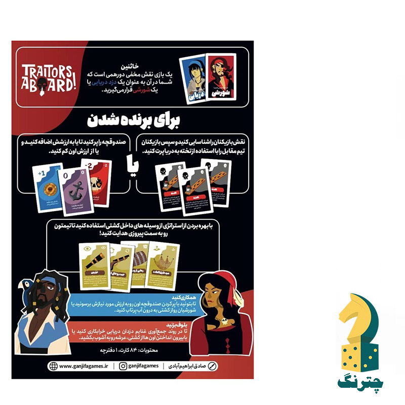 جزییات بازی نقش منفی خائنین میان ما تعداد بازیکنان: 3 تا 8 نفر زمان بازی: حدود 20 الی 30 دقیقه مناسب برای بازیکنان بالای 14 سال کاری از گروه گنجفه