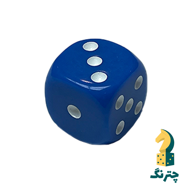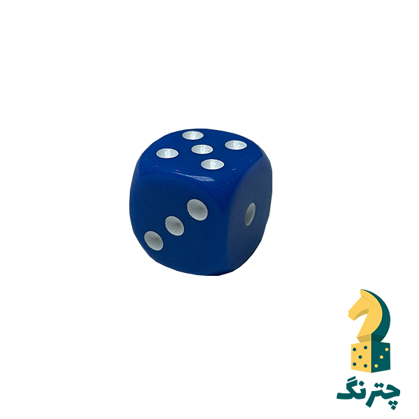جزییات تاس آبی رنگ تک عددی 16 میلیمتر جنس پلاستیک فشرده درجه 1 وارداتی 1 تا 6 ساده