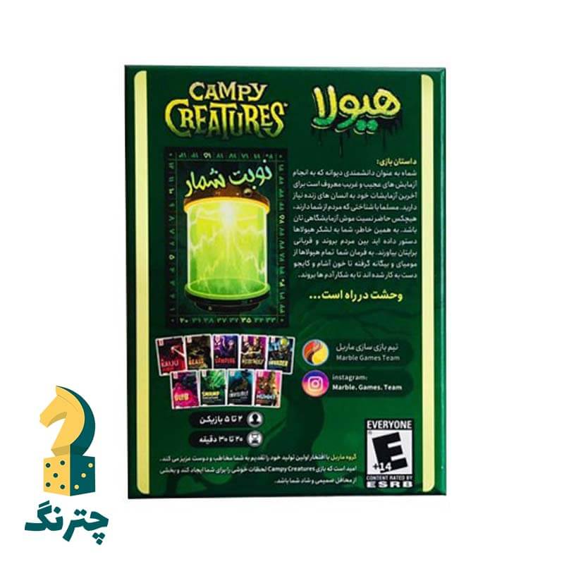 بازی فکری ایرانی شکارچیان هیولا (Campy creatures) می تواند همزمان دو الی چهار بازیکن را به خود مشغول کند. مدت زمان بازی برای اجرای هر دست آن ۱۵ الی ۳۰ دقیقه خواهد بود. این بازی دوست داشتنی که از نوع بازی های فکری کارتی است از جمله ی بازی هایی است که می تواند افراد را از ابتلا به بیماری های گوناگون مغزی بازدارد.