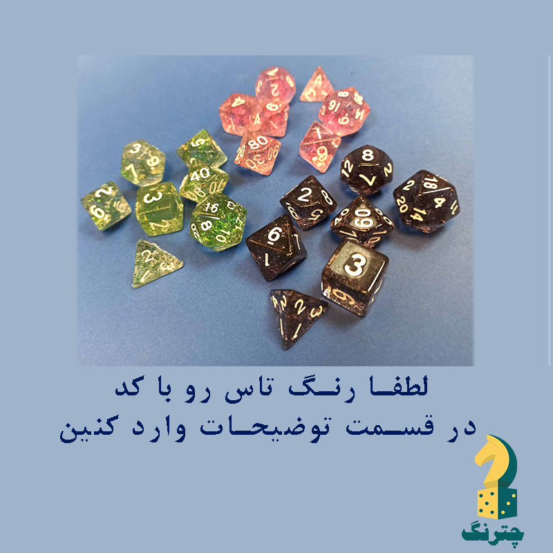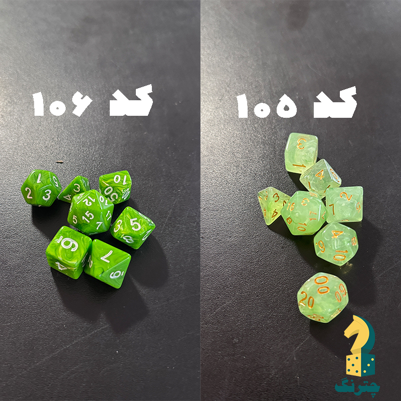 جزییات این محصول شامل 7 تاس بازی D&D یا Dungeons & Dragons است که با کیفیتی بالا و در رنگ بندی های متنوع عرضه میشود