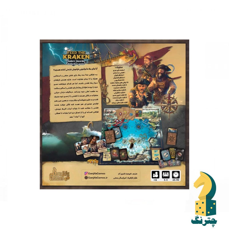 جزییات بازی فکری به کراکن غذا بده FEED THE KRAKEN برگردانی از بازی معتبر خارجی Feed The Kraken به کراکن غذا بده از بهترین بازی های مافیایی و نقش مخفی دنیا در بازی به کراکن غذا بده، هر بازیکن به صورت مخفیانه یک نقش از بین ملوان، دزد دریایی یا رهبر فرقه را دریافت می کند و از تمام ابزارهای موجود برای ترسیم مسیر کشتی به سمت مقصد جناح خود استفاده می کند.