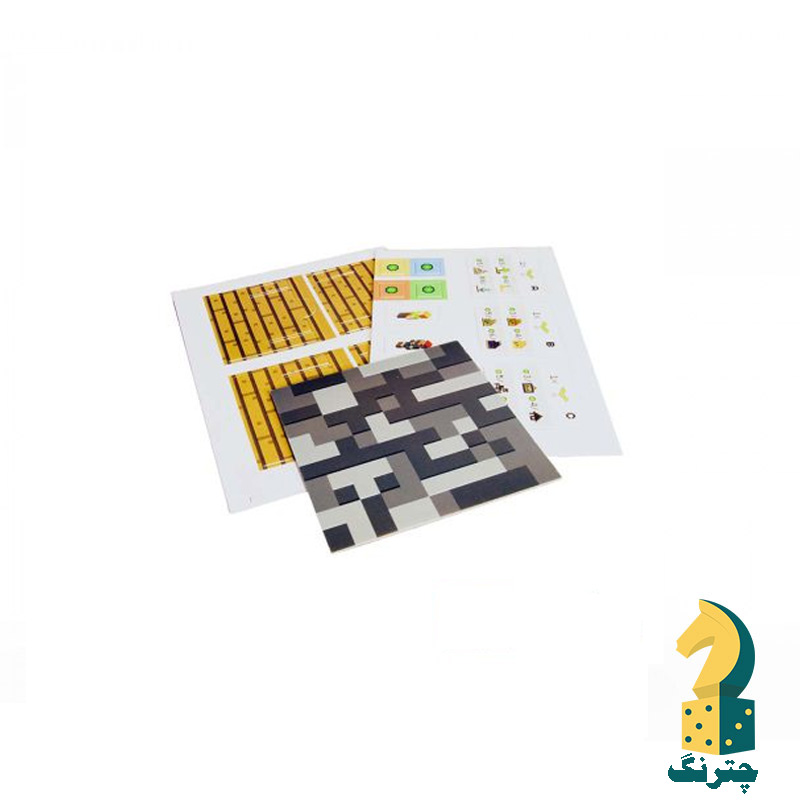 قطعات: صفحه بازی, کاشی مقوایی, مهره های پلاستیکی