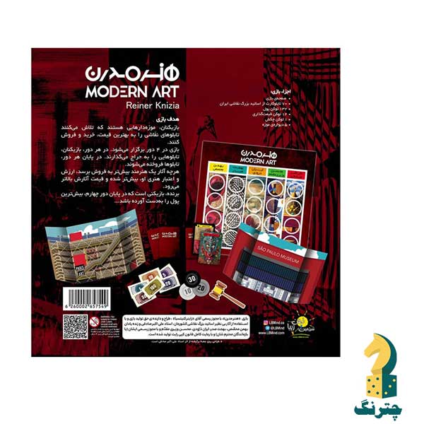 در بازی فکری هنر مدرن بازیکنان، موزهدارهایی هستند که تلاش میکنند تابلوهای نقّاشی را به بهترین قیمت، خرید و فروش کنند. بازی در 4 دُور برگزار میشود. در هر دُور، بازیکنان، تابلوهایی را به حراج میگذارند. در پایانِ هر دُور، تابلوها فروخته میشوند. هرچه آثارِ یک هنرمند بیشتر بهفروش برسند، ارزش و اعتبارِ هنری او، بیشتر میشود!