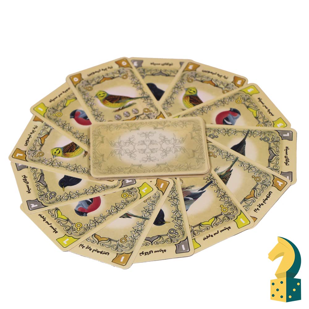 سپس کارتهای دانه و پرندگان را به صورت جداگانه بر بزنید.به هر بازیکن 4 کارت بدهید. بقیه کارتهای پرندگان را در یک دسته به پشت قرار دهید.