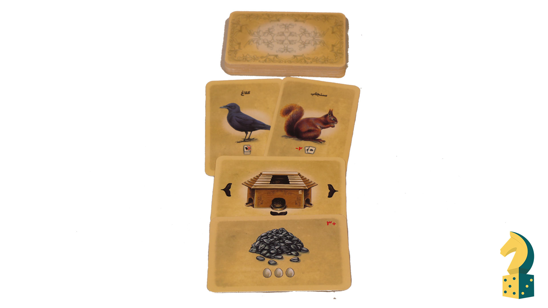 36 عدد کارت دانه( 30 عدد دانه، 3 عدد کلاغو 3 عدد سنجاب)