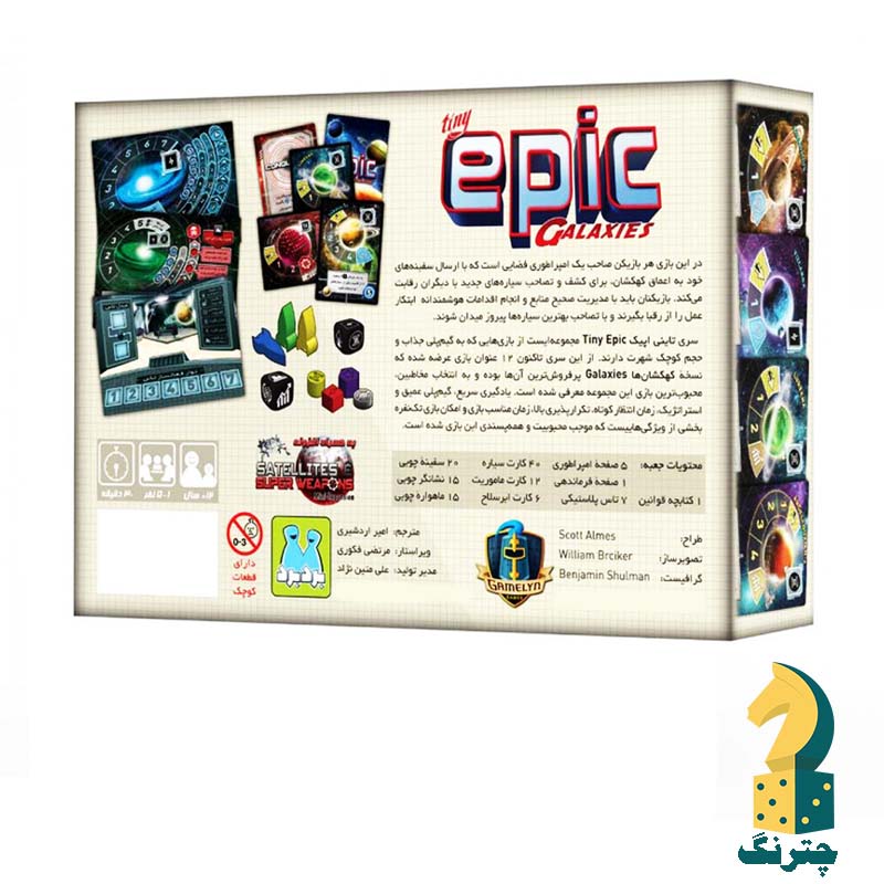 جزییات مجموعه بازی‌های تاینی اپیک (Tiny Epic) یا همان حماسه کوچک، یک سری از بازی‌های فکری هستند که به سرعت محبوب شدند. قوانین ساده، گیم پلی جذاب، تکرارپذیری بالا،‌ امکان بازی تک نفره و …از جمله ویژگی‌های این مجموعه است که باعث محبوبیت آن شده‌است.